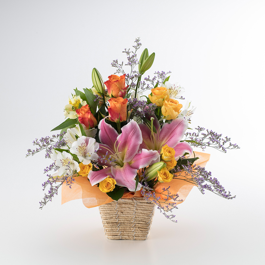 ガーベラ、バラ、カーネーション、アイビー