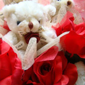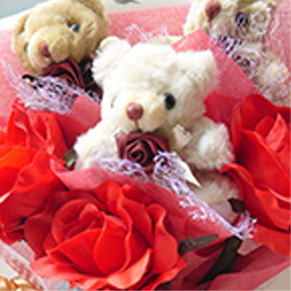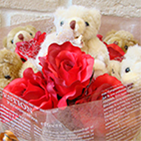 バラ入のくま束です。やっぱりバラは大人気!