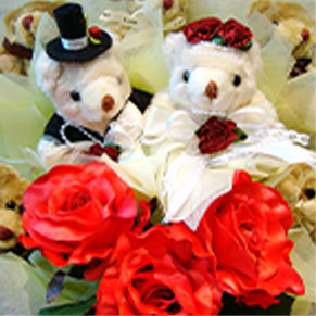 可愛らしい新郎新婦のくま束です。結婚祝いにぴったりです。